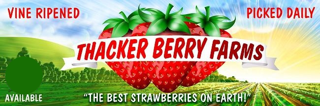 Our Strawberries are vine-ripened and are delivered to our stands daily, straight from the farm. They are unprocessed without gasses and preservatives for the highest quality taste and nutrition. Most store bought Strawberries are picked 3/4 percent green and are gassed and sprayed with preservatives for shipping and to increase shelf life, unlike them we are G.M.O. Free and sustainably farmed. The varieties that Thacker Berry Farms grows are grown for flavor and nutrition, not shipping and artificial shelf life. Come discover why a Vine-Ripened Non-GMO Strawberry grown by people who put the time and care into them come out super sweet. And who have enough experience behind them to put their reputation on the line, produces the best Strawberry experience in the world, and as we like to say The Best Strawberries on Earth!!!